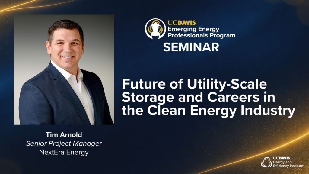Join the UC Davis Energy and Efficiency Institute for an Emerging Energy Professionals seminar featuring Tim Arnold of NextEra Energy, one of the world’s leading renewable energy developers and operators.